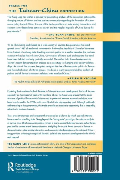 This book explores transitional role of the state in Taiwan's economic development and focuses on impact of trade with mainland China. It provides an analysis of Taiwan's political and economic development in the 1990s, and is helpful for students of Taiwan's economic relations with mainland China.