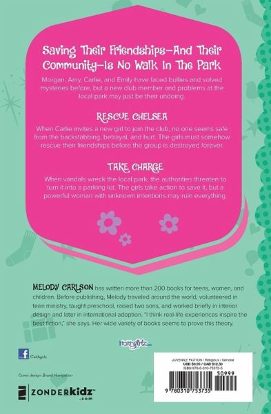 Saving Their Friendships--and their Community--Is No Walk in the Park! Morgan, Amy, Carlie, and Emily have faced bullies and solved mysteries before, but a new club member and problems at the local park may just be their undoing. Rescue Chelsea: When Carlie invites a new girl to join the club, no one seems safe from the backstabbing, betrayal, and hurt. The girls must somehow rescue their friendships before the group is destroyed forever. Take Charge: When vandals wreck the local park, the authorities threaten to turn it into a parking lot. The girls take action to save it, but a powerful woman with unknown intentions may ruin everything.