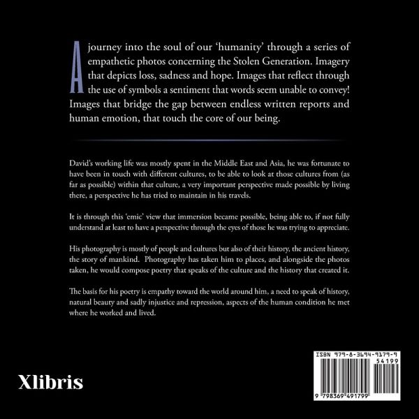 A journey into the soul of our 'humanity' through a series of empathetic photos concerning the Stolen Generation. Imagery that depicts loss, sadness and hope. Images that reflect through the use of symbols a sentiment that words seem unable to convey! Images that bridge the gap between endless written reports and human emotion, that touch the core of our being.