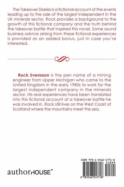 The Takeover Diaries is a fictional account of the events leading up to the sale of the largest independent in the UK minerals sector. Rock provides a background to the growth of this fictional company and the truth behind the takeover battle that inspired this novel. Some sound business advice arising from these fictional experiences is provided as an added bonus, just in case you?re interested.