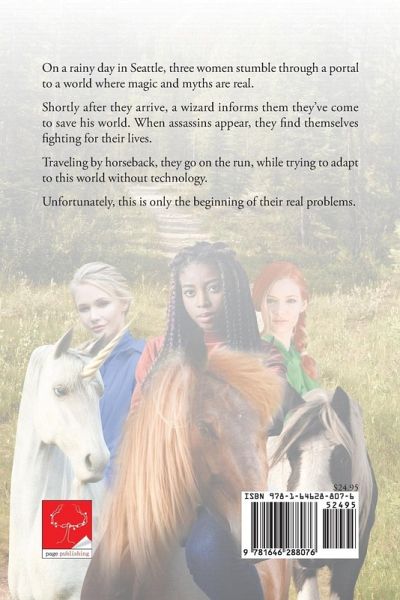 On a rainy day in Seattle, three women stumble through a portal to a world where magic and myths are real. Shortly after they arrive, a wizard informs them they've come to save his world. When assassins appear, they find themselves fighting for their lives. Traveling by horseback, they go on the run, while trying to adapt to this world without technology. Unfortunately, this is only the beginning of their real problems.