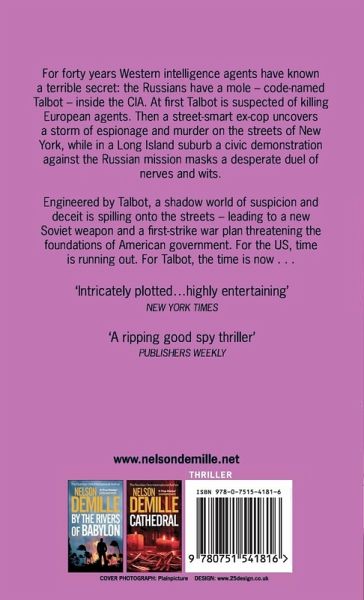 For forty years Western intelligence agents have known a terrible secret: the Russians have a mole - code-named Talbot - inside the CIA. At first Talbot is suspected of killing European agents. Then a street-smart ex-cop uncovers a storm of espionage and murder on the streets of New York, while in a Long Island suburb a civic demonstration against the Russian mission masks a desperate duel of nerves and wits. Engineered by Talbot, a shadow world of suspicion and deceit is spilling onto the streets - leading to a new Soviet weapon and a first-strike war plan threatening the foundations of American government. For the U.S., time is running out. For Talbot, the time is now...