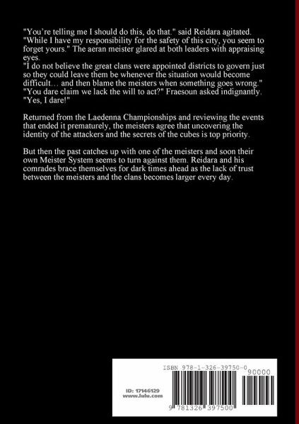 Returned from the Laedenna Championships and reviewing the events of the terrorist attack that ended it abruptly, the meisters agree that uncovering the identity of the attackers and the secrets of the cubes is paramount. But when the past catches up with one of the meisters and soon their own meister system seems to turn against them, Reidara and his comrades brace themselves for dark times ahead. The meisters of Garason are faced with doubts and insecurities over themselves and their title while everything they ever did is thoroughly investigated upon suspicions of corruption.