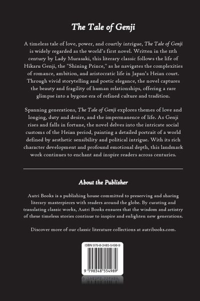 Often considered the world's first novel, The Tale of Genji is an exquisite masterpiece of Japanese literature, written by Lady Murasaki in the early 11th century. Set in the elegant yet politically complex world of the Heian court, the novel follows the life and loves of Hikaru Genji, the son of the emperor and a man of extraordinary beauty, talent, and charm.Through a sweeping narrative of passion, longing, and courtly intrigue, The Tale of Genji captures the customs, aesthetics, and moral dilemmas of Heian-era Japan. With poetic sensitivity, Lady Murasaki crafts an intimate portrait of love and loss, power and impermanence, illuminating a world of unparalleled refinement.This edition presents The Tale of Genji in an accessible and beautifully rendered translation, preserving the grace and nuance of the original text while making it available to modern readers.