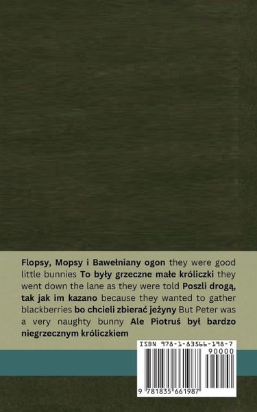 But Peter was a very naughty bunny Ale Piotrü by¿ bardzo niegrzecznym króliczkiem and he ran straight to Mr. McGregor's garden i pobieg¿ prosto do ogrodu pana McGregora and he squeezed under the gate! i przecisn¿¿ si¿ pod bram¿! First he ate some lettuces Najpierw zjad¿ säat¿ then he ate some French beans potem zjad¿ troch¿ fasoli szparagowej and then he ate some radishes A potem zjad¿ rzodkiewki