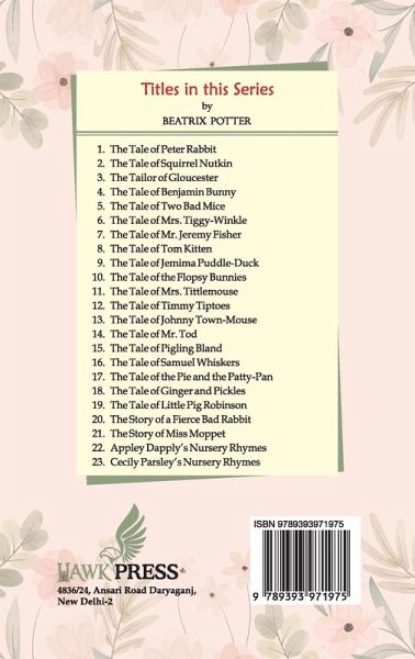 The Tale of Pigling Bland is an original classic by Beatrix Potter. The Tale of Pigling Bland is number fifteen in Beatrix Potter's series of 23 little books. Look out for the rest! 1 The Tale of Peter Rabbit 2 The Tale of Squirrel Nutkin 3 The Tailor of Gloucester 4 The Tale of Benjamin Bunny 5 The Tale of Two Bad Mice 6 The Tale of Mrs. Tiggy-Winkle 7 The Tale of Mr. Jeremy Fisher 8 The Tale of Tom Kitten 9 The Tale of Jemima Puddle-Duck 10 The Tale of the Flopsy Bunnies 11 The Tale of Mrs. Tittlemouse 12 The Tale of Timmy Tiptoes 13 The Tale of Johnny Town-Mouse 14 The Tale of Mr. Tod 15 The Tale of Pigling Bland 16 The Tale of Samuel Whiskers 17 The Tale of The Pie and the Patty-Pan 18 The Tale of Ginger and Pickles 19 The Tale of Little Pig Robinson 20 The Story of a Fierce Bad Rabbit 21 The Story of Miss Moppet 22 Appley Dapply's Nursery Rhymes 23 Cecily Parsley's Nursery Rhymes