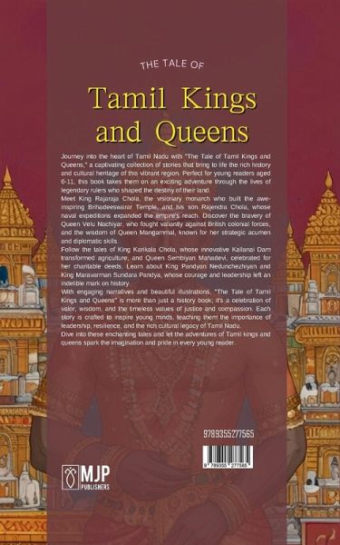 The Kingdom of Tamils, The Legend of King Rajaraja Chola, The Brave Queen Velu Nachiyar, The Mighty King Karikala Chola, The Wise Queen Mangammal, The Just King Rajendra Chola, The Charitable Queen Sembiyan Mahadevi, Legendary King Pandyan Nedunchezhiyan, The Courageous King Maravarman Sundara Pandya
