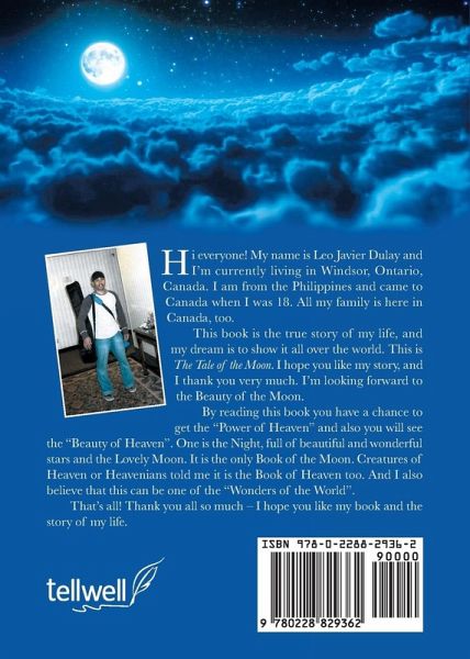 Hi everyone! My name is Leo Javier Dulay and I'm currently living in Windsor, Ontario, Canada. I am from the Philippines and came to Canada when I was 18. All my family is here in Canada, too. This book is the true story of my life, and my dream is to show it all over the world. This is The Tale of the Moon & Heaven. I hope you like my story, and I thank you very much. I'm looking forward to the Beauty of the Moon & Heaven. By reading this book you have a chance to get the "Power of Heaven" and also you will see the "Beauty of Heaven". One is the Night, full of beautiful and wonderful stars and the Lovely Moon. It is the only Book of the Moon. Creatures of Heaven or Heavenians told me it is the Book of Heaven too. And I also believe that this can be one of the "Wonders of the World". That's all! Thank you all so much - I hope you like my book and the story of my life.