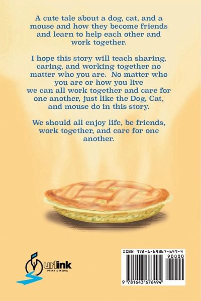 A cute tale about a dog, cat, and a mouse and how they become friends and learn to help each other and work together. I hope this story will teach sharing, caring, and working together no matter who you are. No matter who you are or how you live we can all work together and care for one another, just like the Dog, Cat, and mouse do in this story. We should all enjoy life, be friends, work together, and care for one another.