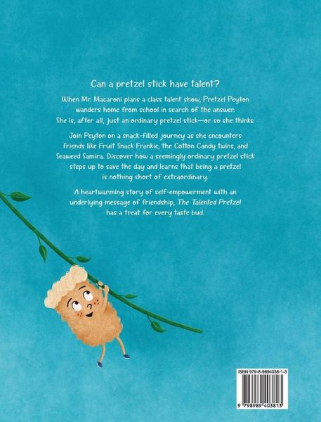First Place Winner: The BookFest 2024 Awards - The Talented Pretzel is an inspirational book that sparks conversations about self-confidence and self-worth, supporting emotional growth and self-empowerment. Charming, original characters teach compassion and empathy towards others, while diversity and uniqueness are celebrated through and acts of kindness and friendship. "...a positive message about kindness, friendship, and empathy. The storyline goes hand in hand with our SEL curriculum..." - Teacher Review Pretzel Peyton is an ordinary pretzel stick with dreams of being extraordinary. Worried she has nothing to contribute to the upcoming class talent show, some encouraging words from her friend, Popcorn Pablo, send her on a journey of self-discovery to find her special talent. But Peyton's plans are suddenly diverted when she encounters several snack-food friends in need of help. Does an ordinary pretzel stick have what it takes to save the day? Will Peyton ever discover her special talent? See how simple acts of kindness and compassion for others ignite Peyton's sense of self-worth and help to uncover her true talents. With playful and relatable characters like Fruit Snack Frankie, the Cotton Candy twins, and Seaweed Samira, The Talented Pretzel has a treat for every taste bud! Supports social-emotional learning (SEL) competencies of:Social awareness and tolerance Relationship skills and empathy Emotional growth and self-empowerment Note from the Author: Reader reviews play an integral role in getting the valuable message of this story into the hands of more children! If you decide to read The Talented Pretzel, please consider leaving an honest review. I hope you enjoy reading this story with a child in your life as much as I enjoyed creating it! This picture book makes a wonderful gift for anyone seeking children's books ages 3-5, children's books about emotions, kid's books about feelings, or kid's self-esteem books. Also great for boys and girls age 3, age 4, age 5, age 6, kindergarten, first grade (1st grade) and even second grade (2nd grade).