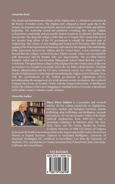 The abrupt and instantaneous collapse of the Afghan state is a distinctive precedent in the history of modern states. The Afghan state collapsed again due to the corrupt, incompetent and, un-proficient, unsorted and unwrought civilian and military leadership. The leadership looted and plundered everything they needed. Afghan policymakers consistently and usually lacked receptivity to objective intelligence assessments. The shameful collapse of the state on 15 August 2021, marked the end of two decades-long efforts of the US government to rebuild the shattered state of Afghanistan. The venture of state building had started on 05 December 2001 with the signing of the Bonn Agreement in Germany, and ended with the signing of the humiliating Doha Agreement between the Taliban and the United States. Locus-communis put forward that the collapse occurred because Afghan societal values were incompatible with democracy and the frontier state was ungovernable. The so-called Islamic Republic ended and its last President Muhammad Ashraf Ghani, fled the capital to Uzbekistan. The ignominious collapse of the Afghan state after twenty years of fake war on terrorism was brought to an abrupt end by the Joe Biden administration. President Biden's administration and the US army committed serious war crimes against the people of Afghanistan by endowing and surrendering the Afghan state to Pakistan. Now, with the establishment of the Taliban government in Afghanistan (2021), notwithstanding the arrangement of a weak internal security mechanism, they replaced National Directorate of Security (NDS) with the General Directorate of Intelligence (GDI). The Taliban's GDI is now struggling to establish itself as it wraestles with internal strife and the country's volatile security situation.