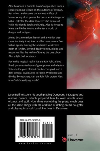 Alec Mason is a humble baker's apprentice from a simple farming village on the outskirts of Tyridan. But when he discovers an ancient artifact of immense mystical power, he becomes the target of Salin Urdrokk, the dark sorcerer who desires it. With his friends Sarah and Kraig, Alec is forced to leave the life he knows and enter a world of danger and intrigue. Joined by a mysterious hermit and a warrior they cannot entirely trust, Alec and his companions flee Salin's agents, braving the uncharted wilderness north of Tyridan. Beyond deadly forests, plains, and mountains lies the realm of Faerie, the one place Alec might find sanctuary. For in this magical realm live the Fair Folk, a long-lived, pure-hearted race of great power and wisdom. Yet even the pure of heart can be corrupted, and a dark betrayal awaits Alec in Faerie. Weakened and divided by treachery, can the Fair Folk protect Alec from Salin's terrifying wrath?