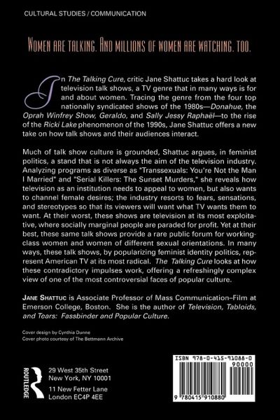 The Talking Cure examines four nationally syndicated television talk shows--Donahue, The Oprah Winfrey Show, Geraldo and Sally Jessy Raphael--which are primarily devoted to feminine culture and issues. Serving as one of the few public forums where working-class women and those with different sexual orientations have a voice, these talk shows represent American TV at its most radical. Shattuc examines the tension between talk's feminist politics and the television industry, who, in their need to appeal to women, trades on sensation, stereotypes and fears in order to engender product consumption. However, this genre is not a one-way form of social interaction. The female audience complies and resists in a complex give-and-take, and it is this relationship which The Talking Cure aims to understand and reveal.