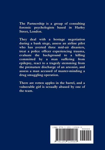 The Partnership is a group of consulting forensic psychologists based in Harley Street, London. They deal with a hostage negotiation during a bank siege, assess an airline pilot who has averted three mid-air disasters, treat a police officer experiencing trauma, evaluate the background to a killing committed by a man suffering from epilepsy, react to a tragedy stemming from the premature discharge of an arsonist, and assess a man accused of master-minding a drug smuggling operation. There are rotten apples in the barrel, and a vulnerable girl is sexually abused by one of the team.