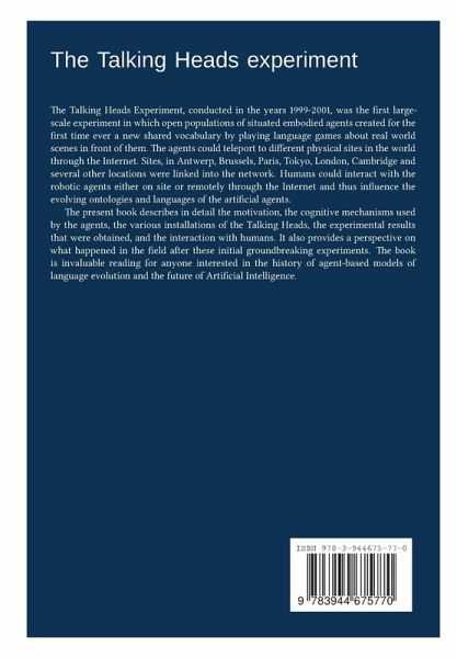 The Talking Heads Experiment, conducted in the years 1999-2001, was the first large-scale experiment in which open populations of situated embodied agents created for the first time ever a new shared vocabulary by playing language games about real world scenes in front of them. The agents could teleport to different physical sites in the world through the Internet. Sites, in Antwerp, Brussels, Paris, Tokyo, London, Cambridge and several other locations were linked into the network. Humans could interact with the robotic agents either on site or remotely through the Internet and thus influence the evolving ontologies and languages of the artificial agents. The present book describes in detail the motivation, the cognitive mechanisms used by the agents, the various installations of the Talking Heads, the experimental results that were obtained, and the interaction with humans. It also provides a perspective on what happened in the field after these initial groundbreaking experiments. The book is invaluable reading for anyone interested in the history of agent-based models of language evolution and the future of Artificial Intelligence.