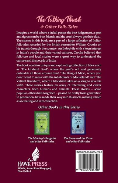 Imagine a world where a jackal passes the best judgement, a goat and tigress can be best friends and the cruel always get their due... The stories in this book are a part of a large collection of Indian folk-tales recorded by the British researcher William Crooke on his travels through the country. An Indophile with a keen interest in India's people and their varied cultures, Crooke believed that folk-lore and local stories were a great way to understand the culture and the people of India. The book contains unique and captivating collection of tales, such as 'The Grateful Goat', where the goat's wit and generosity outmatch all those around him! 'The King of Mice', where you don't want to mess with the inhabitants of Mouseland! and 'The Valiant Blackbird', where a blackbird takes on a king to save his wife!. These stories feature an array of interesting and clever characters, both humans and animals. These stories - some popular, others half-forgotten - passed on orally from generation to generation, have made their way into this book, making it both a fascinating and rare collection.