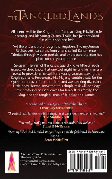 All seems well in the Kingdom of Talodiac. King Edwild's rule is strong, and his young Queen, Thalia, has just provided him with a son and heir. Yet there is unease through the kingdom. The mysterious Redweavers, sorcerers from a land called Kanter, enter Talodiac through woven portals, and one desperate man has plans for the young prince. Sergeant Hervan of the King's Guard knows little of such issues. He does know that one wet night he and his men are asked to provide an escort for a young woman leaving the King's quarters. Presumably His Majesty couldn't wait for the Queen to recover from the birth, and was seeking diversion. Little does Hervan know that this simple task will one day have profound consequences for himself, his family, the King, and the tangled lands of Talodiac and Kanter.