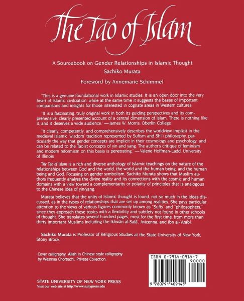 The Tao of Islam is a rich and diverse anthology of Islamic teachings on the nature of the relationships between God and the world, the world and the human being, and the human being and God. Focusing on gender symbolism, Sachiko Murata shows that Muslim authors frequently analyze the divine reality and its connections with the cosmic and human domains with a view toward a complementarity or polarity of principles that is analogous to the Chinese idea of yin/yang. Murata believes that the unity of Islamic thought is found, not so much in the ideas discussed, as in the types of relationships that are set up among realities. She pays particular attention to the views of various figures commonly known as "Sufis" and "philosophers," since they approach these topics with a flexibility and subtlety not found in other schools of thought. She translates several hundred pages, most for the first time, from more than thirty important Muslims including the Ikhwan al-Safa', Avicenna, and Ibn al-'Arabi.
