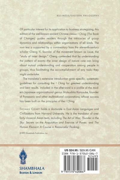 Thomas Cleary's extensive introdution gives specific, systematic guidelines for consulting the I Ching for greatest understanding and best results. Included in the afterword is a profile of the modern Japanese organizational genius Matsushita Konosuke, founder of Panasonic and other multi-national corporations, whose success has been built on the principle of the I Ching.