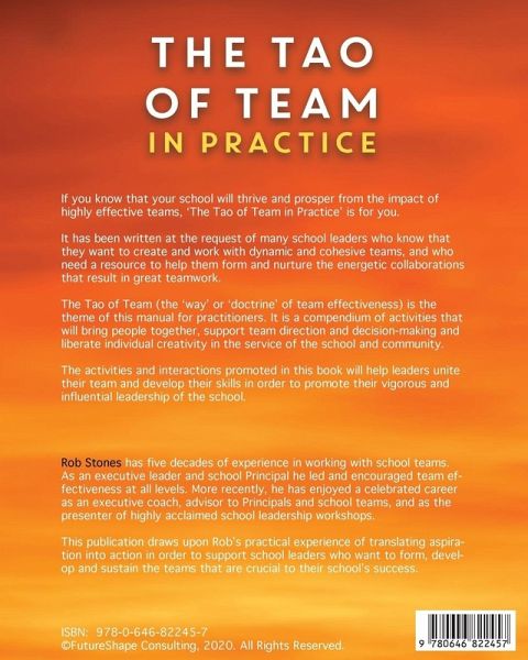 'The Tao of Team in Practice' is a compendium of activities and conversations for forming and developing the effectiveness of school teams. It contains more than 150 activities, conversations and team learning experiences that will assist the team and it's leader through all stages of team creation and performance. Many school leaders are introduced to these activities and discussions in my workshops and many have asked me to write this book so that they can access this resource for developing their own teams. This is my response to their requests. I invite its use by all the other school team leaders who want to create and work with dynamic and cohesive teams. These activities and conversations will provide a resource to help them form and nurture the energetic collaborations that result in great teamwork. The Tao of Team (the 'way' or 'doctrine' of team effectiveness) is the theme of this manual for practitioners. It is a compendium of activities that will bring team-members together, create and sustain team direction, enhance team decision-making and provide rich episodes of team learning for the groups who use it. While I have used these resources most often with school executive teams and with my workshop groups, I know that my school-based colleagues have used this suite of activities in working with stage and faculty teams, school project teams and with their student leaders. At all levels their use has enhanced the communication and clarified the purpose of the team. The introductions to each section of the book will also help team leaders to focus on the essential features of team in order to create teams whose diversity is a strength rather than a challenge. I commend the sections on team diversity and team decision-making to all school leaders who have experienced the challenge of vigorous debate among their team members. The Tao of Team provides the strategies to make a virtue of disagreement. The activities and interactions promoted in this book will help leaders unite their team and develop their skills in order to promote their vigorous and influential leadership of the school.