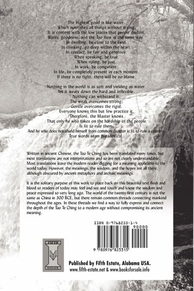 It is the solitary purpose of this work to place back on this beautiful text flesh and blood so readers of today may feel and see and touch and know the wisdom and peace expressed so very long ago. The world of the twenty-first century is not the same as China in 300 BCE, but there remain common threads connecting mankind throughout the ages. In these threads we find a way to fully express and connect the depth of the Tao Te Ching to a modern age without compromising its ancient meaning.