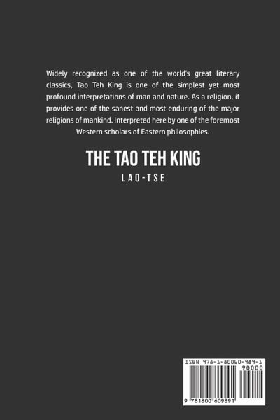 Do you want to read The Tao Teh King? If so then keep reading... Widely recognized as one of the world's great literary classics, Tao Teh King is one of the simplest yet most profound interpretations of man and nature. As a religion, it provides one of the sanest and most enduring of the major religions of mankind. Interpreted here by one of the foremost Western scholars of Eastern philosophies. What are you waiting for The Tao Teh King is one click away, select the "Buy Now" button in the top right corner NOW!