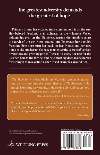 Princess Briana has escaped imprisonment and is on the run. Her beloved Predonia is in upheaval as the villainous Vaylec tightens his grip on the Blameless, tearing the kingdom apart in search of the girl who's evaded him. To regain her people's freedom, Brie must turn her back on her friends and her new home as she and her uncles race to uncover the secrets of Vaylec's mysterious and growing power. There is no safety nor rest for the usurped heir to the throne, and Brie must dig deep inside herself for strength to take action as her world crumbles around her.