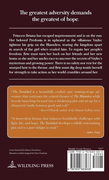 Princess Briana has escaped imprisonment and is on the run. Her beloved Predonia is in upheaval as the villainous Vaylec tightens his grip on the Blameless, tearing the kingdom apart in search of the girl who's evaded him. To regain her people's freedom, Brie must turn her back on her friends and her new home as she and her uncles race to uncover the secrets of Vaylec's mysterious and growing power. There is no safety nor rest for the usurped heir to the throne, and Brie must dig deep inside herself for strength to take action as her world crumbles around her.
