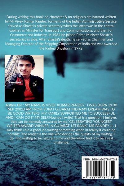 During writing this book no character & no religious are harmed written by Mr Vivek Kumar Pandey.Mr Vivek Kumar Pandey, formerly of the Indian Administrative Service, served as Shastri's private secretary when the latter was in the central cabinet as Minister for Transport and Communications, and then for Commerce and Industry. In 1964 he joined Prime Minister Shastri's secretariat as aide. After Shastri's death, he served as Chairman and Managing Director of the Shipping Corporation of India and was awarded the Padma Bhushan in 1972. In 1974 he was elected Secretary-General of the International Maritime Organization, United Nations, London, for a four-year term. He was unanimously re-elected for three further terms. On retirement he was designated as Secretary-General Emeritus, the only Indian to have been so honored by the United Nations. He was also Founding Chancellor Emeritus of the World Maritime University, conceived and established by him in 1983 under the auspices of the International Maritime Organization. For his outstanding achievements, the Queen of England conferred a knighthood (KCMG) upon him. Similar national honors have been bestowed upon him by the Kings of Sweden, Norway, and Spain, and by the Presidents of Germany, Poland, Portugal, Brazil, Argentina, Egypt, and other countries.