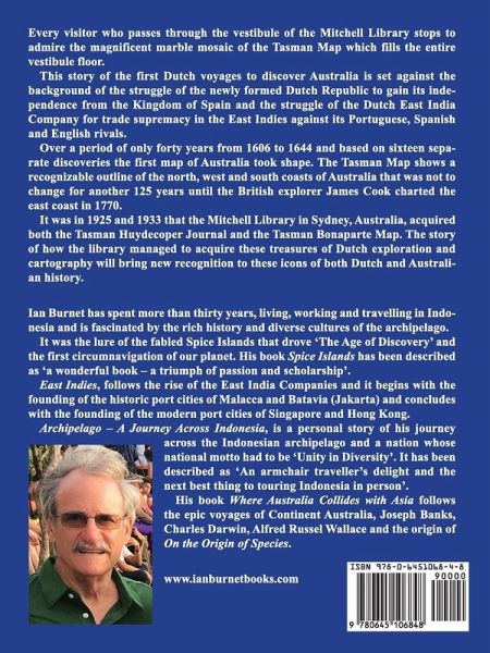 The Tasman Map is an icon of early Dutch cartography and shows the first European discoveries of Australia. Based on sixteen separate discoveries, the first map of Australia took shape over a period of only forty years, from 1606 to 1644. It shows a recognisable outline of the north, west, and south coasts of Australia that was not to change for another 125 years until the arrival of the British explorer James Cook. The version of the map held by the Mitchell Library in Sydney, Australia, is hand-drawn on delicate Japanese paper and is thought to have been specially prepared for presentation to the Amsterdam Chamber of the Dutch East India Company. Every visitor who passes through the vestibule of the Mitchell Library stops to admire the magnificent marble mosaic of the Tasman Map, which fills the entire vestibule floor and shows Abel Tasman's voyages of exploration around Australia in 1642/43 and 1644.
