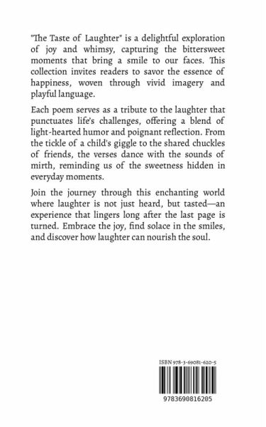 "The Taste of Laughter" is a delightful exploration of joy and whimsy, capturing the bittersweet moments that bring a smile to our faces. This collection invites readers to savor the essence of happiness, woven through vivid imagery and playful language. Each poem serves as a tribute to the laughter that punctuates life's challenges, offering a blend of light-hearted humor and poignant reflection. From the tickle of a child's giggle to the shared chuckles of friends, the verses dance with the sounds of mirth, reminding us of the sweetness hidden in everyday moments. Join the journey through this enchanting world where laughter is not just heard, but tasted-an experience that lingers long after the last page is turned. Embrace the joy, find solace in the smiles, and discover how laughter can nourish the soul.