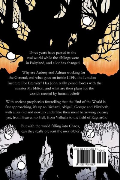 Three years have passed in the real world while the siblings were in Fairyland, and a lot has changed. Why are Aubrey and Adrian working for the General, and what goes on inside LIFE, the London Institute For Eternity? Has John really joined forces with the sinister Mr Milton, and what are their plans for the worlds created by human belief? With ancient prophecies foretelling that the End of the World is fast approaching, it's up to Richard, Abigail, George and Elizabeth, with allies old and new, to undertake their most harrowing journey yet, from Heaven to Hell, from Valhalla to the field of Ragnarök. But with the world falling into Chaos, can they really prevent the inevitable? - - - The apocalyptic finale of the Veil Trilogy delves into the darkest sides of human belief, from myths about the battle between light and darkness to the otherworldly denizens of Heaven and Hell. It also explores the history of Christmas, and the festive season's surprising connections to the End of the World.