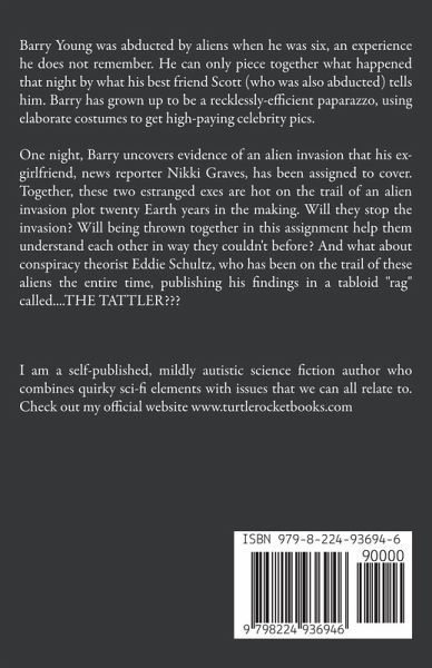 Barry Young was abducted by aliens when he was six, an experience he does not remember. He can only piece together what happened that night by what his best friend Scott (who was also abducted) tells him. Barry has grown up to be a recklessly-efficient paparazzo, using elaborate costumes to get high-paying celebrity pics. One night, Barry uncovers evidence of an alien invasion that his ex-girlfriend, news reporter Nikki Graves, has been assigned to cover. Together, these two estranged exes are hot on the trail of an alien invasion plot twenty Earth years in the making. Will they stop the invasion? Will being thrown together in this assignment help them understand each other in way they couldn't before? And what about conspiracy theorist Eddie Schultz, who has been on the trail of these aliens the entire time, publishing his findings in a tabloid "rag" called....THE TATTLER???
