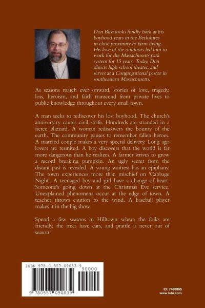 As seasons march ever onward, stories of love, tragedy, loss, heroism, and faith transcend from private lives to public knowledge throughout every small town. Spend some time in Hilltown where the folks are friendly, the trees have ears, and prattle is never out of season.