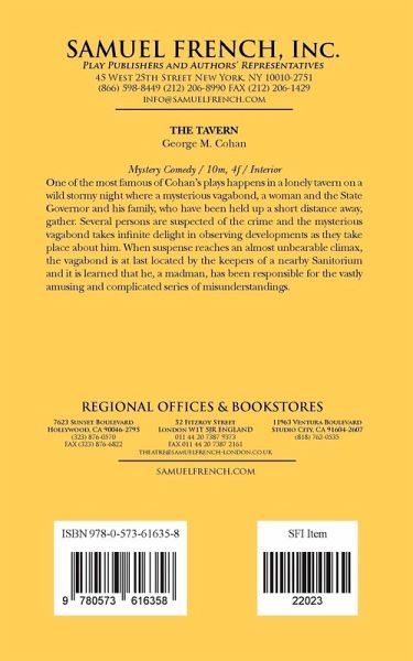 Mystery Comedy George M. Cohan Characters: 10 male, 4 female Interior Set One of the most famous of Cohan's plays happens in a lonely tavern on a wild stormy night where a mysterious vagabond, a woman and the State Governor and his family who have been held up a short distance away gather. Several persons are suspected of the crime and the mysterious vagabond takes infinite delight in observing developments as they take place about him. When suspense reaches an al