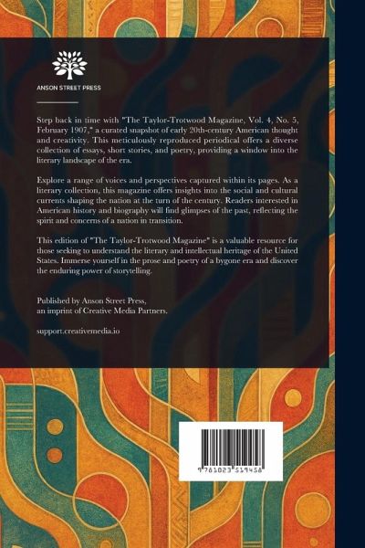Step back in time with "The Taylor-Trotwood Magazine, Vol. 4, No. 5, February 1907," a curated snapshot of early 20th-century American thought and creativity. This meticulously reproduced periodical offers a diverse collection of essays, short stories, and poetry, providing a window into the literary landscape of the era. Explore a range of voices and perspectives captured within its pages. As a literary collection, this magazine offers insights into the social and cultural currents shaping the nation at the turn of the century. Readers interested in American history and biography will find glimpses of the past, reflecting the spirit and concerns of a nation in transition. This edition of "The Taylor-Trotwood Magazine" is a valuable resource for those seeking to understand the literary and intellectual heritage of the United States. Immerse yourself in the prose and poetry of a bygone era and discover the enduring power of storytelling. This work has been selected by scholars as being culturally important, and is part of the knowledge base of civilization as we know it. This work is in the public domain in the United States of America, and possibly other nations. Within the United States, you may freely copy and distribute this work, as no entity (individual or corporate) has a copyright on the body of the work. Scholars believe, and we concur, that this work is important enough to be preserved, reproduced, and made generally available to the public. We appreciate your support of the preservation process, and thank you for being an important part of keeping this knowledge alive and relevant.