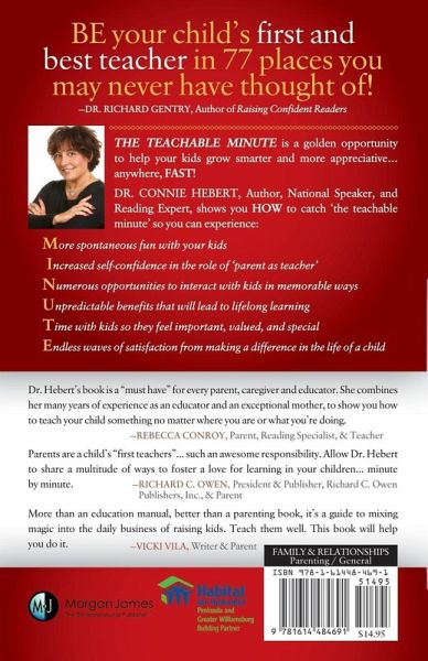 Dr. Connie Hebert is a national literacy consultant, author, university instructor, and motivational speaker for parents. As a Doctor of Education with a specialization in Educational Leadership, Hebert has dedicated over thirty years to catching kids, parents, and teachers by teaching, coaching, speaking, and writing! She is the author of "Catch a Falling Reader," "Catch a Falling Writer," "Catch a Falling Teacher," and 4 sets of Sight Word Phrases. Dr. Connie's career mission has taken her to 47 states and several countries where she has helped parents and teachers to 'catch' kids before it is too late. She is the proud mother of 3 amazing kids and 3 adorable grandchildren. She has caught 'the teachable minute' with thousands of children. Her new book, "The Teachable Minute: The Secret to Raising Smart & Appreciative Kids," is designed to help parents become experts at engaging with their kids in fun, educational, and useful ways every single day.