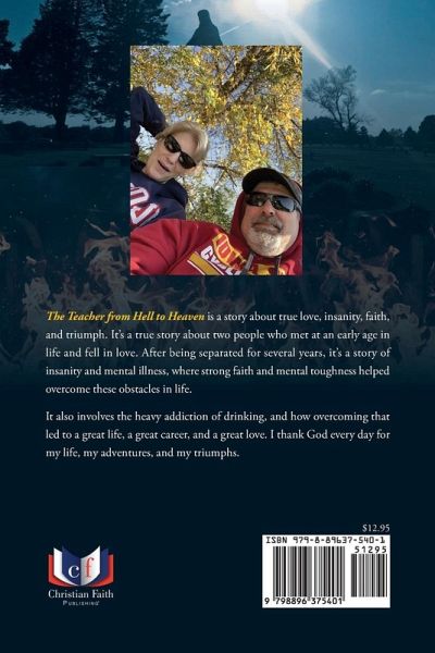 The Teacher from Hell to Heaven is a story about true love, insanity, faith, and triumph. It's a true story about two people who met at an early age in life and fell in love. After being separated for several years, it's a story of insanity and mental illness, where strong faith and mental toughness helped overcome these obstacles in life. It also involves the heavy addiction of drinking, and how overcoming that led to a great life, a great career, and a great love. I thank God every day for my life, my adventures, and my triumphs.