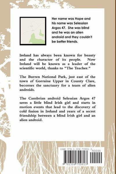 Ireland has always been known for beauty and the character of its people. Now Ireland will be known as a leader of the scientific world, thanks to "The Teacher." The Burren National Park, just east of the town of Gorraine Upper in County Clare, becomes the sanctuary for a team of alien androids. The Cambrian android Selessian Agros 47 saves a little blind Irish girl and starts in motion events that lead to the discovery of cold fusion in Ireland and years of a secret friendship between a blind Irish girl and an alien android.