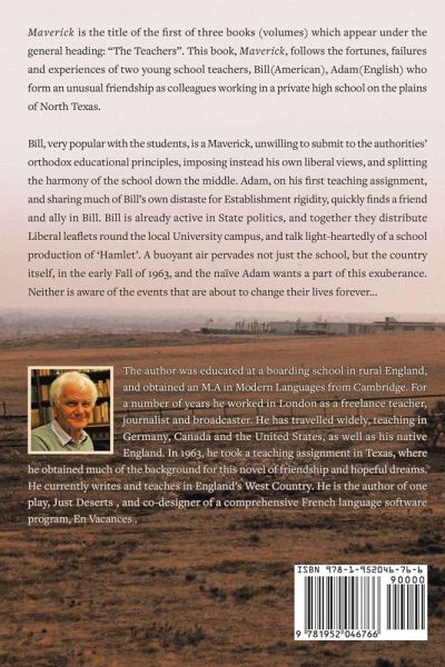 Maverick is the title of the first of three books (volumes) which appear under the general heading: "The Teachers". This book, Maverick, follows the fortunes, failures and experiences of two young school teachers, Bill(American), Adam(English) who form an unusual friendship as colleagues working in a private high school on the plains of North Texas. Bill, very popular with the students, is a Maverick, unwilling to submit to the authorities' orthodox educational principles, imposing instead his own liberal views, and splitting the harmony of the school down the middle. Adam, on his first teaching assignment, and sharing much of Bill's own distaste for Establishment rigidity, quickly finds a friend and ally in Bill. Bill is already active in State politics, and together they distribute Liberal leaflets round the local University campus, and talk light-heartedly of a school production of 'Hamlet'. A buoyant air pervades not just the school, but the country itself, in the early Fall of 1963, and the naïve Adam wants a part of this exuberance. Neither is aware of the events that are about to change their lives forever...Hinweis: Dieser Artikel kann nur an eine deutsche Lieferadresse ausgeliefert werden.