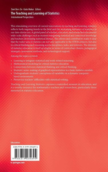Introduction: International Perspectives on Teaching and Learning Statistics.- Young Students' Mental Modelling of Statistical Situations.- Learning to Integrate Statistical and Work-Related Reasoning.- Children Wonder how to Wander Between Data and Context.- Supporting Students to Develop Concepts Underlying Sampling and to Shuttle Between Contextual and Statistical Spheres.- The Language of Shape.- Development of an Understanding of a Sampling Distribution.- Korean High School Students' Understanding of the Concept of Correlation.- Connection Between Statistical Thinking and Critical Thinking?: A Case Study.- Tasks Associated to the Treatment of Tables at Elementary School and Its Level of Difficulty.- Characteristics of Abductive Explanation in Statistics Education of Lower Secondary School.- An Analysis of the Statistical Contents Covered in China, Singapore and Taiwan Mathematics Textbooks at the Primary Level.- Mathematical Modelling for Critical Statistics Education.- Survey andResearch on the Levels of High School Students' Critical Evaluation of Statistical Information and the Influence Factors.- Aspects of Statistical Literacy in Grades 5 and 6.- The Conceptual Understanding of Variability in the Data Distribution.- Students' Misconceptions and Mistakes Related to the Measurementin Statistical Investigation and Graphical Representation of Data.- Overall Understanding of the Middle School Mathematics Course in Teaching Statistics Main Line.- Growth on Fourth-Grade Students' Mathematical Understanding of Average.- The Disaster at the Nuclear Power Station and its District.- Exploring Dotplot in the Perspective of Embodied Cognition.- Students' Difficulties in Understanding the Confidence Intervals.- A Modeling and Simulation Approach to Informal Inference.- Students' Understanding Statistical Terms Having Lexical Ambiguity.- Student Understanding of Symbols in Introductory Statistics Courses.- Two Year College Mathematics Instructors' Concepts of Variation.- Students' Sense Making of Graphical Representation in Basic Statistics.- Teaching Some Basic Statistical Concepts by Experimentation.- Bootstrapping Confidence Intervals.- Undergraduate Students' Conceptions of Variability in a Dynamic Computer-Based Environment.- Transforming Statistics Education Through ICT Application.- Selecting Technology to Promote Learning in an Online Introductory Statistics Course.- The Role of Technology in Indian Statistic Education: A Review.- Building Up the Boxplot in Indian Statistics Education.- Building up the Boxplot as a Tool for Representing and Structuring Data Distributions.- Integrated Reasoning about Statistical Variation.-Preservice Teachers' Difficulties with Statistical Writing.- Teachers' Questions in the Statistics Class.- Statistical Training of Pre-Service Teachers with Application in School Practice.- Statistics in Primary Education in Greece.- Developing Statistical Literacy (DSL).- Teacher Capacity as a Key Element of National Curriculum Reform in Statistical Thinking.- A Framework for Assessing Statistical Knowledge for Teaching Based on the Identification of Conceptions of Variability Held by Teachers.- An Investigation into the Statistics Education of Pre-Service Mathematics Teachers at an Irish University.