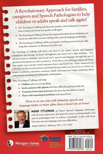 People with speaking difficulties are at the mercy of insurance companies who are determining how often and for how long speech therapy services should be delivered. It is also a disturbing reality that the likelihood for therapy frequency and length of care is contingent upon either the level of competence or comfort level of the speech-language pathologist or the financial policies of each institution. Often it has nothing to do with the severity or need for speech therapy. Our health care system is in no position to bankroll the long-term therapy that many people need who have moderate to profound speaking difficulties. The goal of Teaching of Talking is to make sure that any loved one, caregiver or speech-language pathologist is thoroughly knowledgeable in methods to help people improve talking since it is never known when the plug will be pulled on speech and language therapy services. Ittleman says: "I see hundreds of people with speech and language difficulties each year. By reading and applying The Teaching of Talking, you will have the confidence to help your client or loved one, no matter what the insurance company or institution does. By learning to do what is in Teaching of Talking you will be more self-sufficient and will not have to rely on anyone to provide your loved one with expert speech therapy.