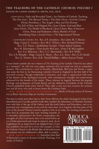 The Teaching of the Catholic Church Volume 1 Edited by Canon George D. Smith, D.D., Ph.D. Contents: Faith and Revealed Truth An Outline of Catholic Teaching The One God The Blessed Trinity The Holy Ghost God the Creator Divine Providence The Angels Man and His Destiny The Fall of Man and Original Sin Jesus Christ, God and Man Jesus Christ, The Model of Manhood Jesus Christ, Man of Sorrows Christ, Priest and Redeemer Mary, Mother of God Sanctifying Grace Actual Grace The Supernatural Virtues Contributions by Rev. J. P. Arendzen · Rev. John M. T. Barton · Msgr. Canon C. Cronin · Rev. M.C. D'Arcy · Rev. Richard Downey · Rev. T. E. Flynn · Archbishop Goodier · Dom Aelred Graham · Rev. H. Harrington · Dom Justin McCann · Dom J. B. McLaughlin · Rev. E. J. Mahoney · Rev. C. C. Martindale · Rev. B. V. Miller · Rev. J. P. Murphy · Msgr. Canon E. Myers · Rev. A. L. Reys · Rev. G. D. Smith · Rev. E. Towers · Rev. O. R. Vassall-Phillips · Abbot Anscar Vonier