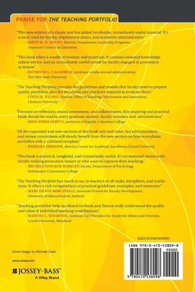 Praise for The Teaching Portfolio "This new edition of a classic text has added invaluable, immediately useful material. It's a must-read for faculty, department chairs, and academic administrators." --Irene W. D. Hecht, director, Department Leadership Programs, American Council on Education "This book offers a wealth of wisdom and materials. It contains essential knowledge, salient advice, and an immediately useful model for faculty engaged in promotion or tenure." --Raymond L. Calabrese, professor of educational administration, The Ohio State University "The Teaching Portfolio provides the guidelines and models that faculty need to prepare quality portfolios, plus the standards and practices required to evaluate them." --Linda B. Nilson, director, Office of Teaching Effectiveness and Innovation, Clemson University "Focused on reflection, sound assessment, and collaboration, this inspiring and practical book should be read by every graduate student, faculty member, and administrator." --John Zubizarreta, professor of English, Columbia College "All the expanded and new sections of this book add real value, but administrators and review committees will clearly benefit from the new section on how to evaluate portfolios with a validated template." --Barbara Hornum, director, Center for Academic Excellence, Drexel University "This book is practical, insightful, and immediately useful. It's an essential resource for faculty seeking promotion/tenure or who want to improve their teaching." --Michele Stocker-Barkley, faculty, Department of Psychology, Kishwaukee Community College "The Teaching Portfolio has much to say to teachers of all ranks, disciplines, and institutions. It offers a rich compendium of practical guidelines, examples, and resources." --Mary Deane Sorcinelli, Associate Provost for Faculty Development, University of Massachusetts Amherst "Teaching portfolios help our Board on Rank and Tenure really understand the quality and value of individual teaching contributions." --Martha L. Wharton, Assistant Vice President for Academic Affairs and Diversity, Loyola University, Maryland