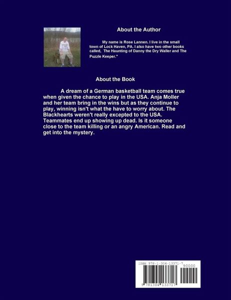 A dream of a German basketball team comes true when given the chance to play in the USA. Anja Moller and her team bring in the wins but as they continue to play, winning isn't what the have to worry about. The Blackhearts weren't really excepted to the USA. Teammates end up showing up dead. Is it someone close to the team killing or an angry American. Read and get into the mystery.