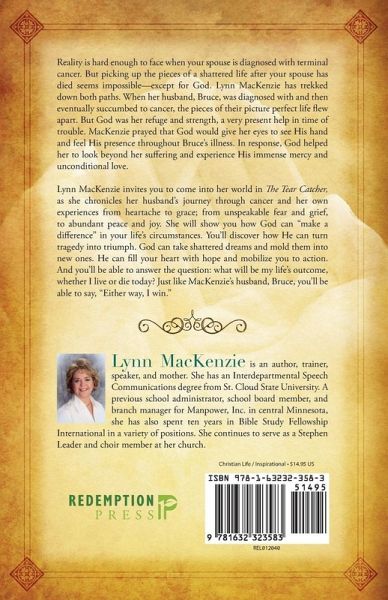 Reality is hard enough to face when your spouse is diagnosed with terminal cancer. But picking up the pieces of a shattered life after your spouse has died seems impossible—except for God. Lynn MacKenzie has trekked down both paths. When her husband, Bruce, was diagnosed with and then eventually succumbed to cancer, the pieces of their picture perfect life flew apart. But God was her refuge and strength, a very present help in time of trouble. MacKenzie prayed that God would give her eyes to see His hand and feel His presence throughout Bruce's illness. In response, God helped her to look beyond her suffering and experience His immense mercy and unconditional love. Lynn MacKenzie invites you to come into her world in The Tear Catcher, as she chronicles her husband's journey through cancer and her own experiences from heartache to grace; from unspeakable fear and grief, to abundant peace and joy.