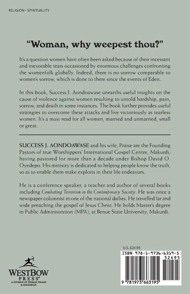 "Woman, why weepest thou?" It's a question women have often been asked because of their incessant and inexorable tears occasioned by enormous challenges confronting the womenfolk globally. Indeed, there is no sorrow comparable to women's sorrow, which is done to them since the events of Eden. In this book, Success J. Aondoawase unearths useful insights on the cause of violence against women resulting to untold hardship, pain, sorrow, and death in some instances. The book further provides useful strategies to overcome these attacks and live victoriously as tearless women. It's a must read for all women, married and unmarried, small or great.
