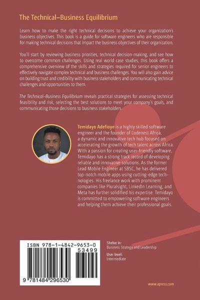 You'll start by reviewing business priorities, technical decision-making, and see how to overcome common challenges. Using real world case studies, this book offers a comprehensive overview of the skills and strategies required for senior engineers to effectively navigate complex technical and business challenges. You will also gain advice on building trust and credibility with business stakeholders and communicating technical challenges and opportunities to them.