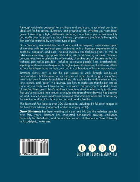 The Technical Pen features over 300 illustrations, including 34 full-color images in the hardcover edition (paperback edition is in gray scale). Although originally designed for architects and engineers, a technical pen is an ideal tool for fine artists, illustrators, and graphic artists. Whether you want loose gestural sketching or tight, deliberate renderings, a technical pen moves smoothly and easily over the paper¿s surface. It offers a precise and predictable line quality that can¿t be matched by any other type of pen. Gary Simmons, renowned teacher of pen-and-ink techniques, covers every aspect of working with the technical pen, beginning with a thorough explanation of its anatomy, operation, and care. He also includes troubleshooting tips as well as advice on choosing appropriate nib widths, inks, and drawing surfaces. Simmons demonstrates how to achieve the wide variety of strokes and stroke patterns that the technical pen makes possible¿including continuous parallel lines, crosshatching, stippling, and more¿and explores, through copious illustrations, the different effects various techniques have on their own and in combination with other approaches. Simmons shows how to put the pen strokes to work through step-by-step demonstrations that illustrate the ins and outs of expert level image construction, from initial pencil sketch through final inking. He explains the fundamentals of form, tone, texture, and ¿color¿ in drawings, and how to make sure that the pen strokes do what you really want them to do. For instance, perhaps yoüve added a layer of hatched lines over a bird¿s feathers to create a shadow effect, only to discover that yoüve obscured their texture, or maybe one area of your drawing has become too dark. Gary Simmons addresses these and other common obstacles of mastering the medium and explains how you can avoid and solve them. Gary Simmons has been working with pen and ink and the technical pen for over forty years. Simmons has conducted pen-and-ink drawing workshops nationally for Koh-I-Noor, and he teaches fine arts at Henderson State University in Arkadelphia, Arkansas.