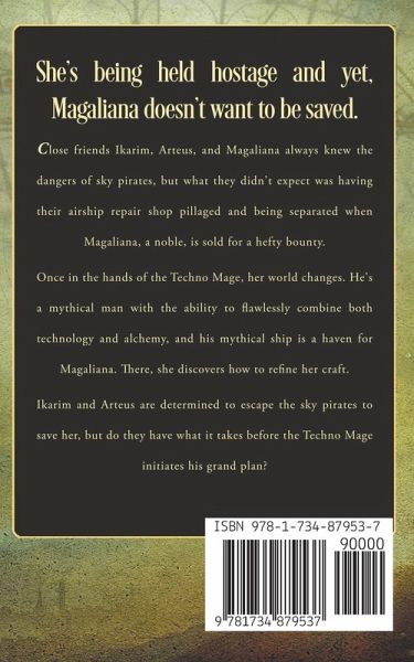 A trio of friends, a mythical man, and a race to destroy the equally mythical airship Faugregir. Will they make it in time? Close friends Ikarim, Arteus, and Magaliana always knew the dangers of sky pirates, but what they didn't expect was having their airship repair shop pillaged and being separated when Magaliana, a noble, is sold for a hefty bounty. Once in the hands of the Techno Mage, her world changes. He's a mythical man with the ability to flawlessly combine both technology and alchemy, and his mythical ship is a haven for Magaliana. There, she discovers how to refine her craft. Ikarim and Arteus are determined to escape the sky pirates to save her, but do they have what it takes before the Techno Mage initiates his grand plan?